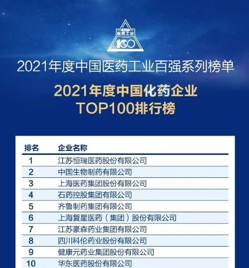 7月12日晚,正在举行的2022米思会(中国医药健康产业共生大会)上,发布了“2021年度中国医药工业百强系列榜单”。尊龙凯时国际医药以扎实的创新研发实力和稳健的市场运营能力,再次蝉联“中国化药企业TOP100排行榜”榜首。
